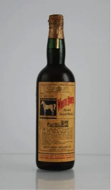 White Horse è un altro dei marchi storici dell’industria del blending (sia moderno che passato), di proprietà della Lagavulin Distillery da cui si prendeva il Single Malt per la sua composizione. Questa etichetta è uno dei blended più ricercati del passato (soprattutto nella versione TinCup) in quanto si ritiene che sia di una qualità veramente eccelsa. Anche questa bottiglia ha sicuramente bisogno di ossigenarsi un po’, ma si è dimostrata più pronta della precedente. Per essere fatto con del Lagavulin non abbiamo riscontrato delle note decisamente affumicate e pure il bouquet non peccava certo di intensità olfattiva. In bocca le cose hanno iniziato ad andare subito meglio: fortemente speziato, erbaceo, con un accenno di fumo, il tutto di buon equilibrio e struttura. Davvero godibilissimo da bere, si sente che è composto da quasi tutto malto e pochissimo grain (come per molti blended dell’epoca in quanto per le distillerie poteva essere più economico utilizzare Single Malt, visto che ne avevano in abbondanza piuttosto che acquistare del whisky di cereali da altri). Morbido, setoso, vellutato, va giù che è un piacere, prosegue aumentando in intensità con una buona persistenza. Se dobbiamo essere sinceri, dopo aver sentito meraviglie di questa bottiglia, ci aspettavamo qualcosa in più, ma può darsi che ci voglia ancora qualche giorno perché il whisky possa esprimersi al meglio. C’è chi dice che alcune grandi bottiglie di White Horse degli anni ‘60 contengano al suo interno non del Lagavulin ma, in realtà, del rarissimo Malt Mill (il Single Malt che ha ispirato la storia della Botte Ritrovata nel Film Angels Share di K. Loach).